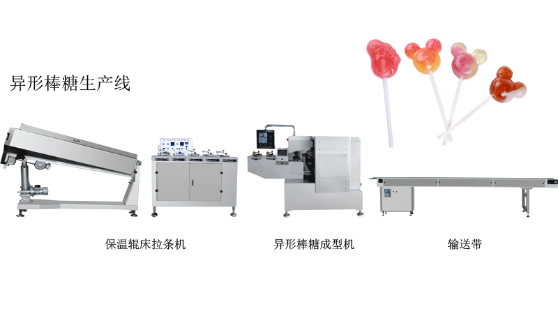 適用于異形棒棒糖的生產(chǎn),例如:扁圓形、橢圓形、大腳板及卡通異形棒棒糖的生產(chǎn)(形狀可根據(jù)客戶要求而定)。