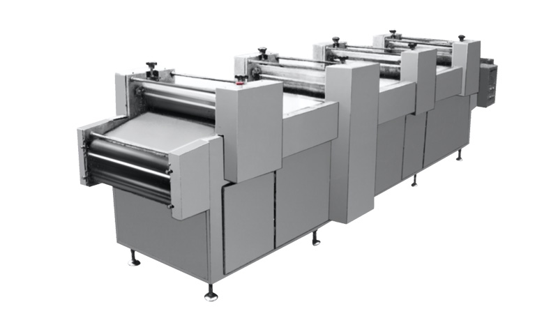 該機(jī)采用雙帶同步送料,自動(dòng)灑粉,壓面厚度可調(diào),條形粗細(xì)均勻,切割長短一致。適用于沙琪瑪、金果、江米條等面制品。